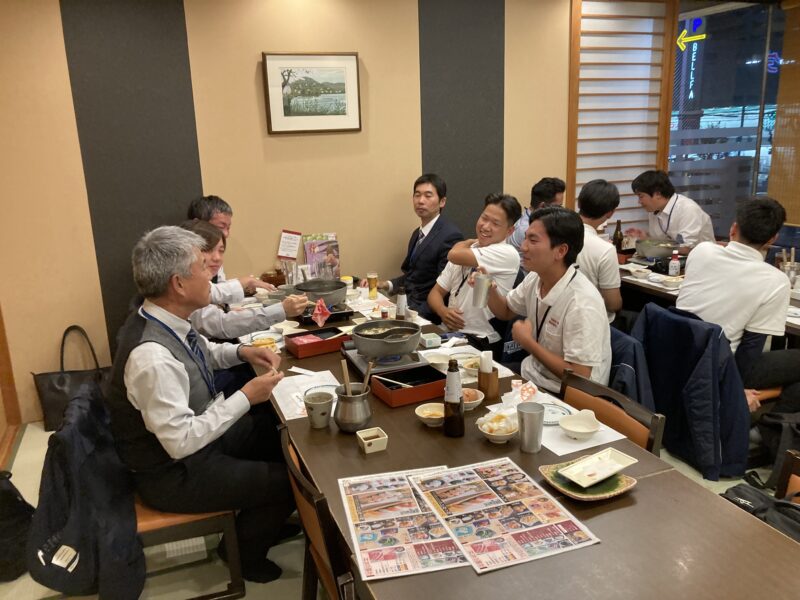 会社説明会の後は本社近辺の飲食店へ移動し、食事も交えた懇親会を行いました。