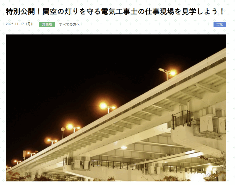 「特別公開!関空の灯りを守る電気工事士の仕事現場を見学しよう!」